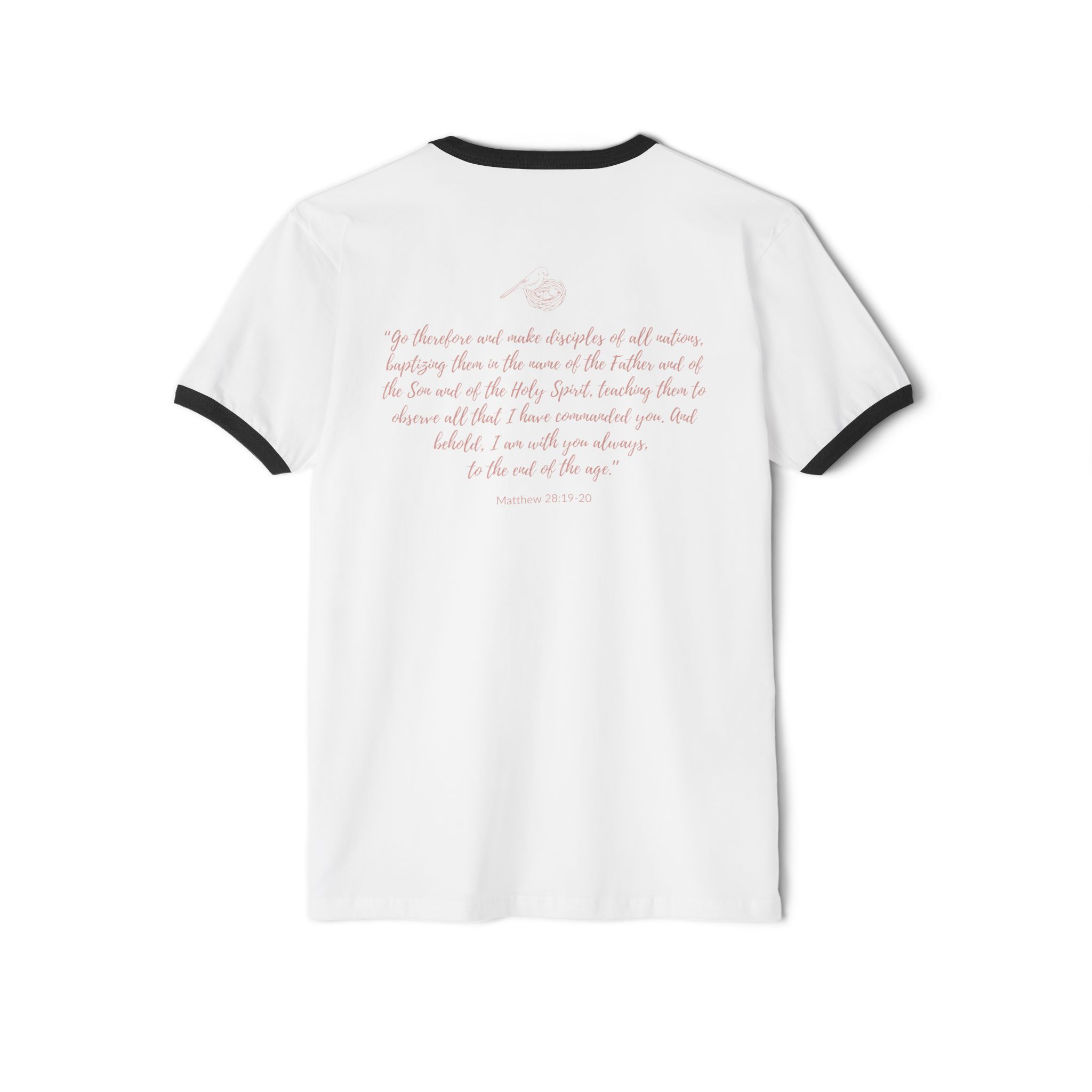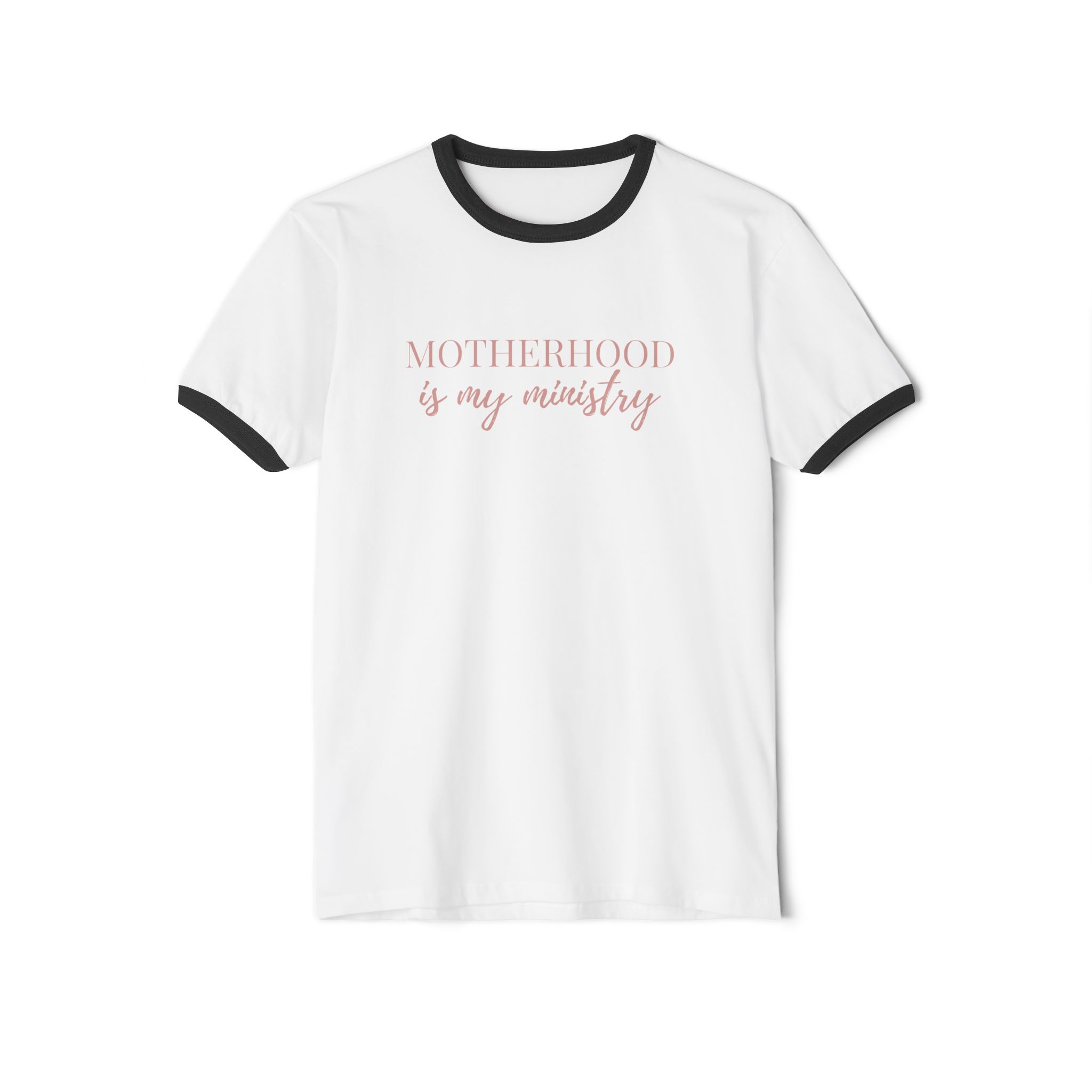 Motherhood is my ministry, Cotton, Unisex Ringer Tee Shirt, featuring the Great Commission, for moms and homemakers